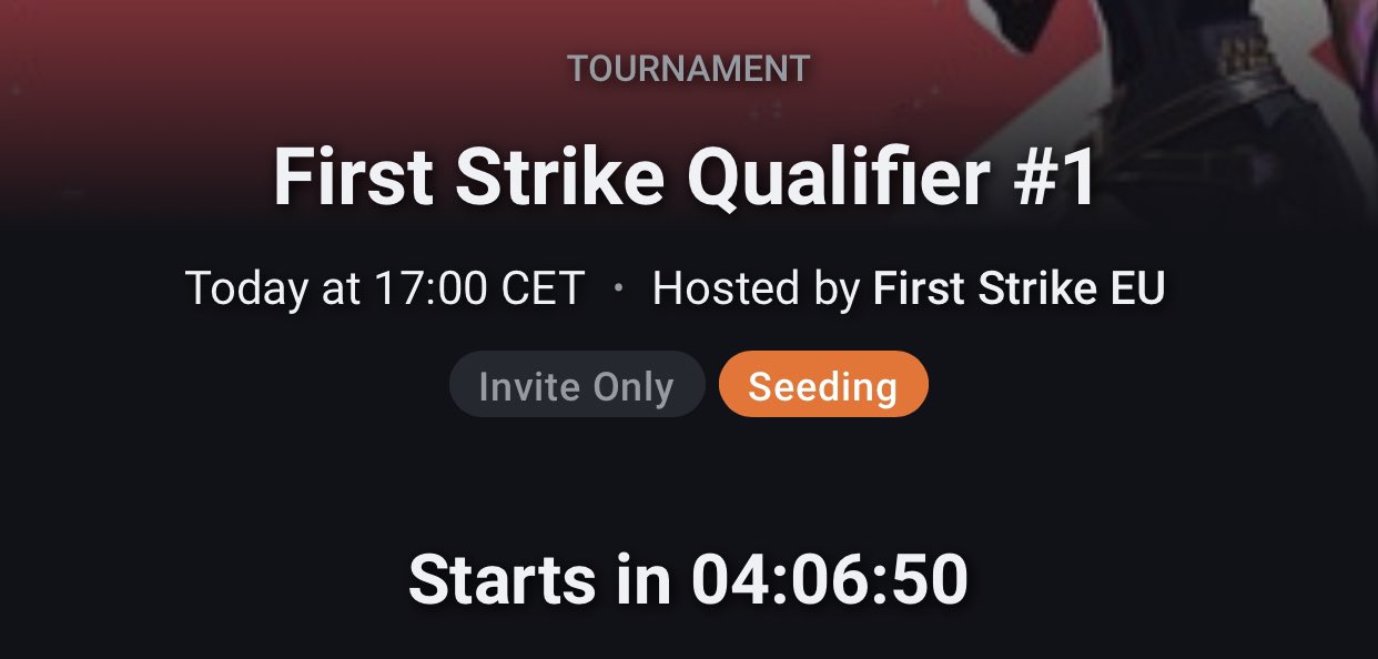This qualifier took place from Nov 14 to Nov 15 2020 featuring 8 teams. Valorant First Strike Tournament Is Here. This qualifier took place from Nov 09 to Nov 10 2020 featuring 192 teams.